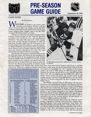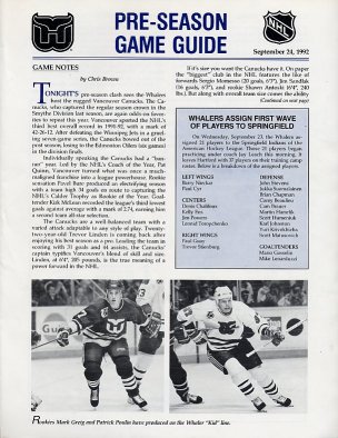 92/93 HARTFORD WHALERS PROGRAMS (VOLUME #1)